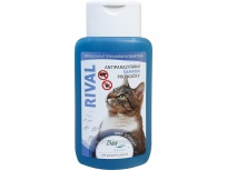 Rival pro kočky je šampón s následnými repelentními účinky. 100% účinnost šamponu. Šampon pro kočky, spolehlivě hubí blechy, vši, klíšťata (i přisátá) a ostatní parazity. Jemný ke kůži - obsahuje přetučňující přísady a jako zklidňující složka je obsažen olej TEA TREE. Minimální účinnost 4 týdny. Návod k použití: Šampon zředíme vodou v poměru 1:3. Do namočené srsti naneseme odpovídající množství šamponu a rozpěníme. Pěnu necháme několik minut působit. Pozor! Dbáme, aby se šampon ani pěna nedostaly do kontaktu se sliznicemi (oči, nos, tlama). Dokonale spláchneme vodou. Postup doporučujeme zopakovat. Srst vysušíme fénem nebo necháme volně proschnout.