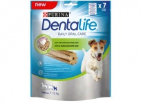 Tyčinky na čištění zubů. Inovativní žvýkací pochoutka je měkká a nadýchaná (porézní). Je vědecky dokázáno, že pomáhá hloubkově vyčistit i špatně dostupné zadní zuby, které jsou nejvíce ohroženy zubním kamenem a plakem. Purina® DentaLife® je navržená pro každodenní užití a je velmi šetrná k dásním psa díky své měkké konzistenci. Myšlenka není zub dřít, jako u tvrdých dentálních pamlsků, ale stírat plak ze zubu. Zuby se otírají a zabořují do tyčinky a tím se čistí. Použití každý den znamená více času věnovanému čištění zubů. Doporučená denní dávka je jedna tyčinka denně. Složení: obiloviny (extrudovaná kukuřičná mouka 60 %, pšeničná mouka 5 %), glycerol, minerální látky, kvasnice, maso a výrobky živočišného původu (1,2 %*), oleje a tuky. *odpovídá 4 % rehydratovaného m