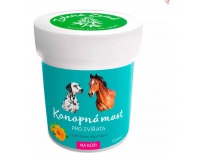 Mast na kůži s konopím a s měsíčkem lékařským napomáhá při řešení kožních problémů zvířat. Mast se nejčastěji používá u psů a koní. Napomáhá při řešení kožních problémů u zvířat, podporuje přirozenou obnovu kůže, působí prospěšně na drobná povrchová poranění a na podlomy. U pejsků nachází své uplatnění při hojení jizev a drobných poranění, je vhodná na rozškrábanou pokožku, také se často používá na tlapky pejsků (zejména v zimě a na podzim). Pokožku zvláčňuje, snižuje svědivost a obnovuje elasticitu. Složení mastičky je inspirováno tradiční recepturou našich babiček. Základ masti tvoří lanolin, což je přírodní ovčí tuk, který významně pomáhá s rehydratací pokožky. Dále je v masti obsaženo konopí, bambucké máslo a včelí vosk. Neobsahuje vazelínu. Jedná se