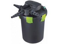 Tlaková filtrace s UV lampou a čerpadlem vhodná pro zahradní jezírka do objemu 13 m3 bez ryb, do 6,5 m3 s rybami. Filtr obsahuje všechny potřebné náplně - hrubá pěna, jemná pěna a bio kuličky. Součástí je zabudovaná 11W UV lampa a čerpadlo. Filtr se umisťuje na okraj jezírka. Vývod z filtru je možné napojit na potůček. Filtr: Pro jezírka: do 13 000 l Rozměry: 370 x 370 x 605 mm (DxŠxV) Objem filtru: 30l UV lampa: 11W Délka kabelu: cca 6,2m Čerpadlo Aqua Nova NFPX 3500: Max. průtok: 3500 l/h Max. výtlak: 2,5 m Příkon: 14W Napojení hadic vstup: 1”, 1 ¼”, 1 ½” Napojení hadic výstup: 1”, 1 ¼”, 1 ½”, 2” Délka kabelu: 10 m Rozměry (DxŠxH): 350 x 310 x 150 mm Set je možné propojit hadicí 1”, 1 ¼”