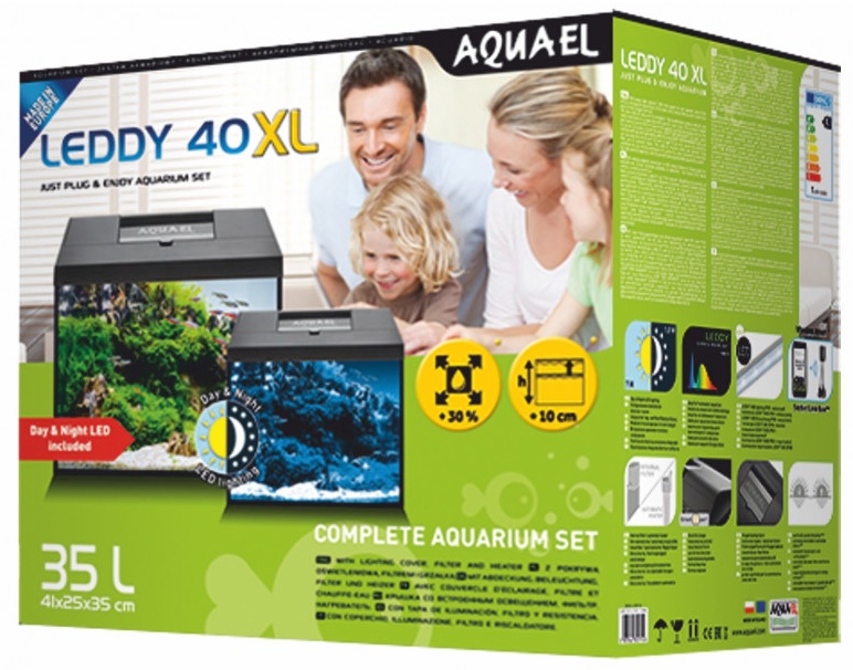 Sada LEDDY XL byla vyvinuta pro nadšence, kteří od svého akvária očekávají větší prostor i lepší technické vybavení. Oproti standardnímu modelu LEDDY nabízí tato verze podstatně vyšší a prostornější nádrž, což znamená až o 40 % větší objem (LEDDY 40 XL) – a to bez navýšení půdorysné plochy. Ideální volba pro všechny, kdo chtějí více místa pro ryby, rostliny i dekorace. Součástí balení je kompletní výbava, takže akvárium můžete snadno zprovoznit ihned po rozbalení. Najdete zde kvalitní filtr, spolehlivý ohrievač, moderní osvětlení Day & Night a navíc i držák DubLED, díky kterému lze jednoduše přidat další světelný modul a zdvojnásobit světelný výkon. Hlavní výhody a vybavení - Retrofit Leddy Tube Day & Night – moderní LED osvětlení se 3 světelnými režimy (denní, večerní a noční). - Držák DubLED – umožňuje instalaci dalšího světla Leddy Tube Retrofit pro zvýšení intenzity osvětlení. - Filtr ASAP 300 – efektivní filtrace pro čistou a zdravou vodu. - Topítko Fix 2 – zajišťuje stabilní teplotu ideální pro většinu akvarijních ryb. - Praktický kryt s integrovaným osvětlením. Sada LEDDY XL představuje ideální řešení pro každého, kdo chce mít elegantní, prostorné a dobře osvětlené akvárium s kompletním příslušenstvím připraveným k okamžitému použití.