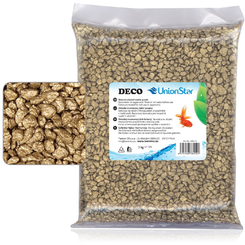 Akvarijní šterk střední zrnitosti v pestrých barvách.- barveno trojí vrstvou certifikované barvy vhodné pro použití v akváriíchBarva: zlatáZrnitost: 4 - 7 mmBalení: 2kg