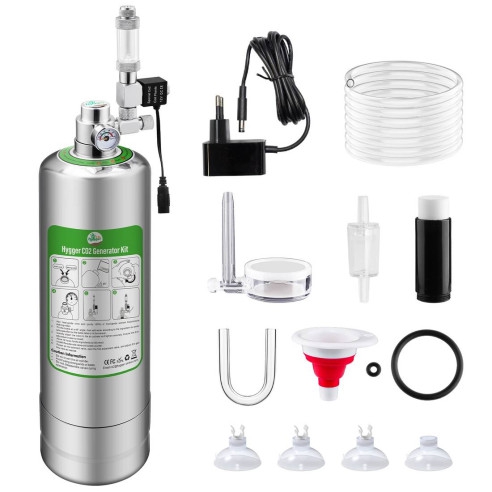 Dopřejte svým akvarijním rostlinám přesně to, co potřebují pro bujný růst a syté barvy. Hygger CO2 Generátor je bezpečná a nákladově efektivní alternativa ke klasickým tlakovým lahvím. Tento systém pracuje na principu reakce dvousložkové náplně, díky které si čistý plyn CO2 vyrobíte sami v pohodlí domova. Jednou za čas dosypete do lahve náplně a souprava tak nepřetržitě generuje CO2 pro Vaše rostlinky. Set je vhodný pro akvária všech velikostí - od nano akvárií až po mnohosetlitrové nádrže - díky přesné regulaci snadno přizpůsobíte dávkování potřebám Vašeho akvária. Jak CO2 generátor funguje - Do lahve vložíme dva rozpustné sáčky se složkou A, následně nasypeme obsah sáčku B - Zalijeme 300 ml vody - Našroubíme ventil na láhev (ujistíme se, že je jehlový ventil uzavřený) - Necháme reakci proběhnout - můžeme sledovat narůstání tlaku v lahvi na manometru - Osadíme na redukční ventil elektromagnet a počítadlo bublin - Zapojíme elektromagnet do sítě a povolíme jehlový ventil Příslušenství pro dávkování CO2 v ceně : - 2m vysokotlaká čirá hadička - zpětný ventil na hadičku - akrylový difuzor s přísavkou - 3x přísavka na hadičku - akrylové kolínko Obsah balení: - Nerezová tlaková lahev 2l - Nerezový redukční ventil - Elektromagnetický ventil - Adaptér 12V - Počítadlo bublin - Filtr proti sraženinám - Násypka - 2m vysokotlaká čirá hadička - zpětný ventil na hadičku - akrylový difuzor s přísavkou - 3x přísavka na hadičku - akrylové kolínko - 2x náhradní těsnění - Provozní náplň