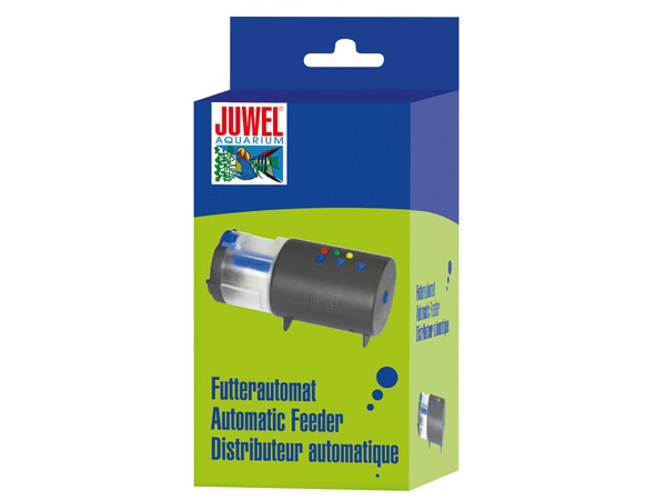 Programovatelné, automatické krmítko pro všechny typy akvárií. K umístění krmítka je třeba pouze vyříznout otvor do krycí klapky akvária, do kterého je pak možno nasadit nosnou misku pro krmítko. Nosná miska je konstruována tak, že obsahuje malou vyjímatelnou klapku, kterán uzavírá krycí otvor, pokud není krmítko v provozu. U mnoha akvárií JUWEL je tento otvor již vyražen a uzavřen víčkem. Krmítko obsahuje 2 baterie AA 1,5 V.