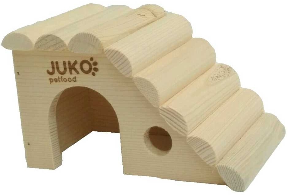 Domek s šikmým bokem, po kterém se zvířátko snadno dostane na plochou střechu. Využívat může tedy i střechu. Domeček má malé okno umožňující průhled do domečku. Je vhodný pro morče a hlodavce podobné velikosti. Materiál: vyzrálé vysušené smrkové dřevo - hladce obroušené, bez povrchové úpravy Rozměry: 25 x 15 x 18,5cm (šířka, výška, hloubka)