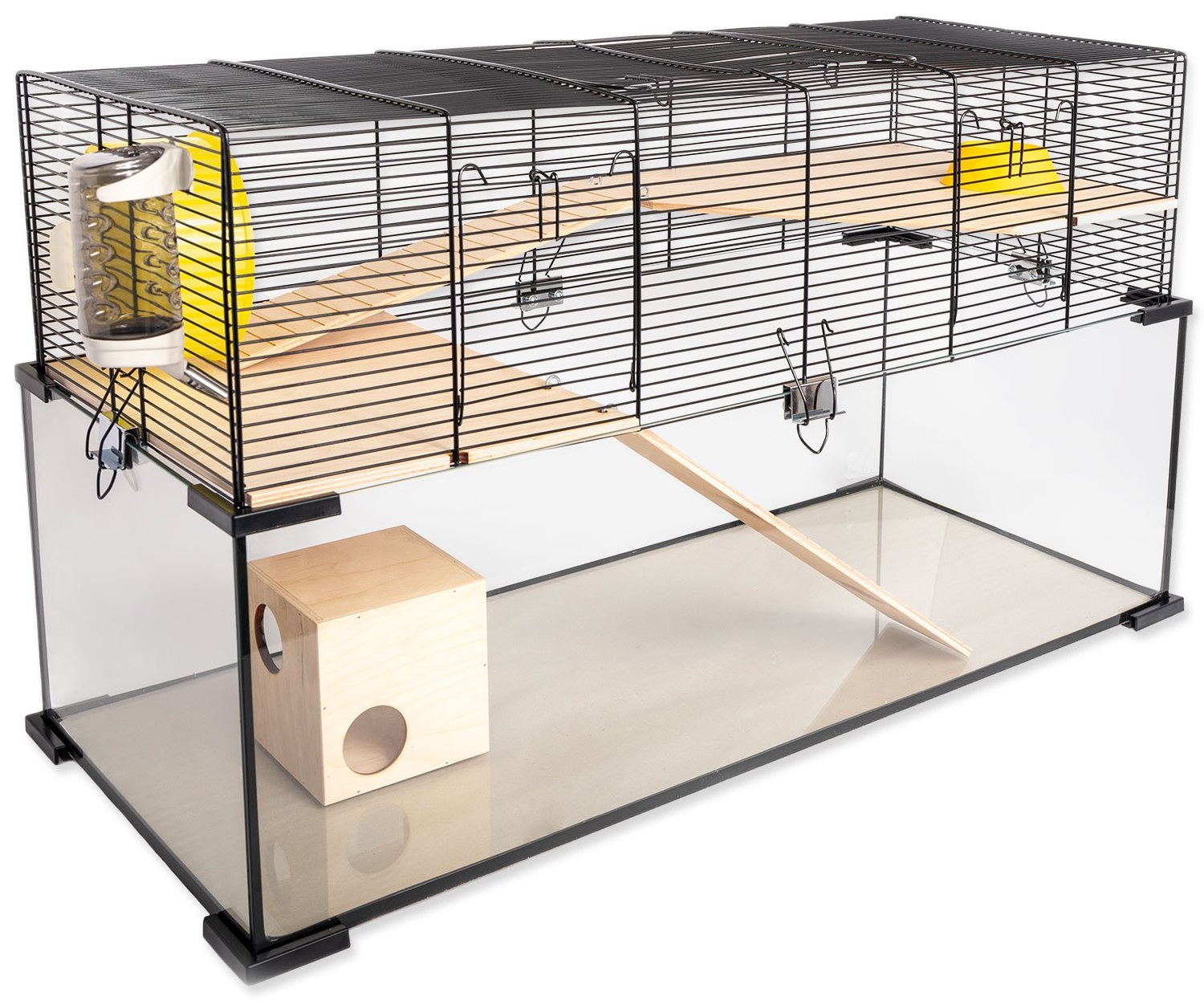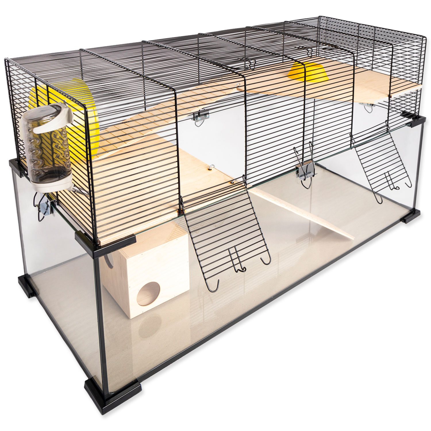 Dvoupatrová klec VETRO PLUS NATURE je ideální volbou pro malé hlodavce, kterým poskytne dostatek prostoru i zábavy. Spojuje praktický design se skleněným spodkem a kovovým krytem, díky čemuž máte svého mazlíčka neustále na očích. Vysoký skleněný spodek umožňuje vložit větší množství podestýlky, ve které si zvířátko může spokojeně hrabat a naplňovat tak svůj přirozený instinkt. Součástí balení je také praktické vybavení, které zajistí pohodlí a aktivní život vašeho mazlíčka. - Dvoupatrové provedení nabízí více prostoru pro pohyb a hru. - Skleněná základna s kovovým krytem umožňuje skvělý výhled na mazlíčka. - Vysoký základ pojme velké množství podestýlky pro přirozené hrabání. - Součástí balení je žebřík, miska, napáječka, běhací kolečko a bavlněná podestýlka v tunelu.