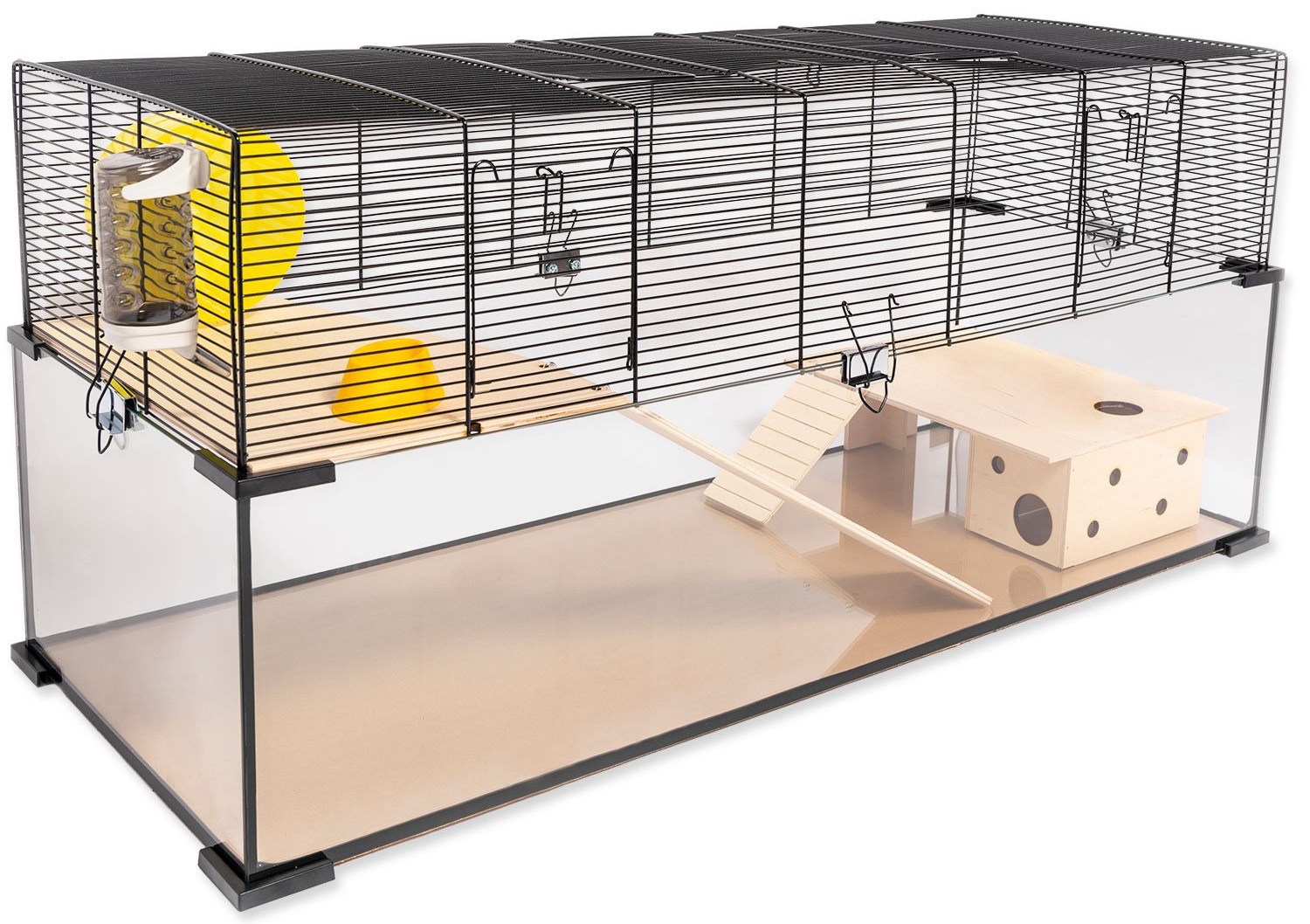 Dvoupatrová klec VETRO PLUS NATURE je ideální volbou pro malé hlodavce, kterým poskytne dostatek prostoru i zábavy. Spojuje praktický design se skleněným spodkem a kovovým krytem, díky čemuž máte svého mazlíčka neustále na očích. Vysoký skleněný spodek umožňuje vložit větší množství podestýlky, ve které si zvířátko může spokojeně hrabat a naplňovat tak svůj přirozený instinkt. Součástí balení je také praktické vybavení, které zajistí pohodlí a aktivní život vašeho mazlíčka. - Dvoupatrové provedení nabízí více prostoru pro pohyb a hru. - Skleněná základna s kovovým krytem umožňuje skvělý výhled na mazlíčka. - Vysoký základ pojme velké množství podestýlky pro přirozené hrabání. - Součástí balení je žebřík, miska, napáječka, běhací kolečko a bavlněná podestýlka v tunelu.
