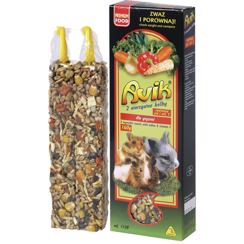 Avik - tvarované kompletní krmivo pro hlodavce se zeleninou. Obohaceno jódem a vitamínem C.Krmiva Daphnia jsou vyrobena bez chemických příměsí. Jejich základ tvoří přirozeným procesem vyzrálé rostlinné suroviny (obiloviny, olejniny, traviny, zelenina apod.).Krmiva Daphnia obsahují v prirozené formě minerály a vitamíny nutné ke správné základní výživě a vývoji Vašeho miláčka.Na základě dlouholetých zkušeností jsou krmiva sestavena z výše uvedených komponentů a přísad, odpovídající příslušnému druhu krmiva, ve všech požadavcích.Složení: pšenice, kukuřice, ovsík, slunečnice, ořech, len, ovoce, zelenina a jiné.Krmný návod: odstraňte fólii a zavěste do klece. Zajistěte stálý přístup k čerstvé pitné vodě.Balení: 2 ks (2 x 70 g)