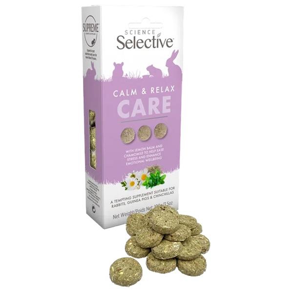 Chutné pamlsky Science Selective Calm & Relax Care s meduňkou a heřmánkem pomáhají zmírňovat stres a zlepšovat emoční pohodu u králíků, morčat a činčil. Mohou být prospěšné pro domácí mazlíčky se sklony k úzkosti a jsou ideální pro použití ve stresových situacích (hluk, stěhování, nový člen rodiny). Meduňka citronová pomáhá uklidnit a snižovat pocity úzkosti. Heřmánek pomáhá snižovat stres a zlepšuje náladu. Pamlsky jsou ideální pro krmení z ruky – k navázání či prohloubení vztahu s drobným mazlíčkem. Složení je čistě přírodní, bez umělých barviv, příchutí a přidaných cukrů. Hlavní přednosti: podpora psychické pohody, vysoký obsah vlákniny, chutné přírodní složení, lněné semínko bohaté na omega-3 a omega-6 mastné kyseliny, určené pro králíky, morčata a činčily, ideální pro krmení z ruky. Složení: pšeničná mouka, mleté seno z bojínku lučního, mleté sušené svatojánské boby, ovesné vločky, sójový olej, mletý hrách, sušená meduňka (2 %), lněná semínka, sušený heřmánek (1 %), mrkvový koncentrát, borůvkový koncentrát. Analytické složky: hrubý protein (min) 8 %, hrubý tuk (min) 2 %, hrubá vláknina (max) 12 %, vlhkost (max) 10 %. Krmný návod: Jde o doplněk k běžné stravě. Krmte 1–2 pamlsky denně. Zajistěte, aby měl váš mazlíček vždy dostatek čerstvé pitné vody.