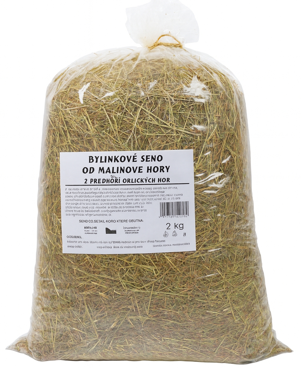 Bylinkové seno od Soba, z předhůří Orlických hor. Bylinkové seno pochází z luk čisté a nedotčené přírody, tato oblast je protkána linií předválečného opevnění a dnes zde doslova lišky a vlci dávají dobrou noc. Seno obsahuje mnoho nejrůznějších bylin a travin, což domácí mazličci zajisté ocení.