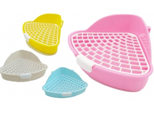 WC pro fretky s plastovým roštem. Rozměry: 18 x 18 x 24,5 cm. Barva: růžová, modrá nebo oranžová