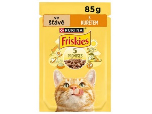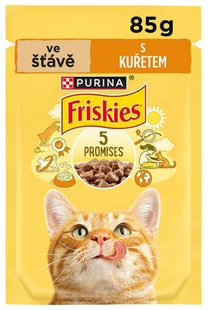 Kapsičky pro kočky Friskies obsahují masové knedlíčky. Masové knedlíčky obklopuje šťáva s přidanou zeleninou. Každá kapsička pro kočky Friskies představuje právě jednu čerstvou krmnou dávku, tedy snídani, oběd i večeři. Kapsičky pro kočky Friskies jsou kompletním krmivem pro dospělé kočky v běžné zátěži. Složení: S kuřetem ve šťávě: maso a výrobky živočišného původu (z toho kuře 4 %), obiloviny, minerální látky, cukry Doporučená denní dávka 3-4ks kapsičky Friskies 100g pro 1 kočku (4kg) Balení 1 ks / 26 ks.