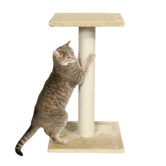 Škrábadlo pro kočky ESPEJO, podesta + válec s odpočívadlem. Základna 40 x 40 cm, výška 69 cm, sloupek průměr 9 cm.