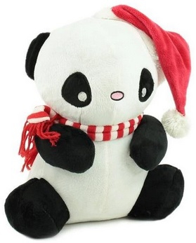 Hračka pro psy – panda se šálou a červenou vánoční čepičkou. Příjemný měkký materiál, velikost hračky 25 cm.