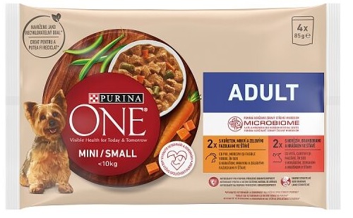 Purina ONE MINI Dog adult kuře a hovězí ve šťávě 4 x 85 g kapsa