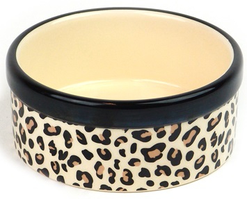 Designová miska pro psy je vyrobená z lesklé glazurované keramiky s leopardím motivem. Miska je díky své váze velmi stabilní, je vhodná na vodu i krmivo a je ideální pro malá i střední plemena psů.