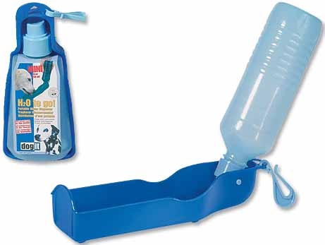 Plastová skládací láhev s krytem. Velikost: průměr 6 cm, délka 25 cm. Cestovní zásobník na vodu vhodný pro použití při různých příležitostech (při jízdě autem, procházkách nebo kempování). Tento výrobek má revoluční design – je to zásobník a miska v jednom – pro přepravu a spotřebu pitné vody. Pomocí připevněného háčku lze i zavěsit.
