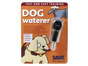 Kovová napáječka p připojení na vodovodní kohoutek. Velikost: délka 9 cm, průměr 3 cm.