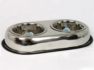 Sada dvou nerezových misek v podstavci. Nerez misky, stojan s povrchovou úpravou komaxit.