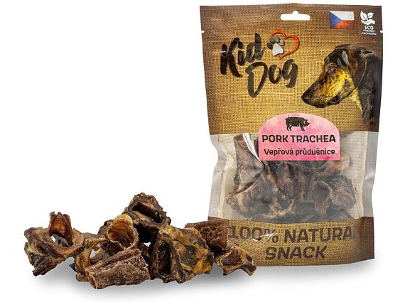 KIDDOG 100% Natural Snack, vepřová krájená průdušnice 4 - 5 cm / 200 g