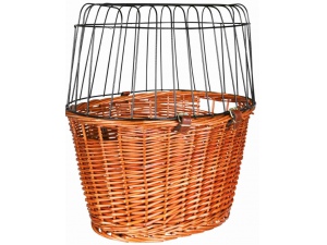Proutěný koš na kolo s drátěnou kabinou. - s drátěným pletivem - připevnění k řidítkům pomocí dvů drátěných držáků - barva: světle hnědá - nosnost : do 5 kg - velikost : 44 x 33 x 48 cm