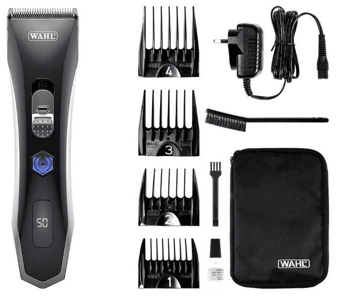 • příslušenství : textilní pouzdro, 4 přídavné plastové hřebeny, nabíjecí kabel, olejnička se speciálním olejem na střihací hlavice, čistící kartáček