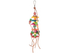 Plastová hračka se zvonky, korálky a žabkou, která je vhodná pro malé a střední exoty. Materiál: plast, kov. Délka: 25 cm.