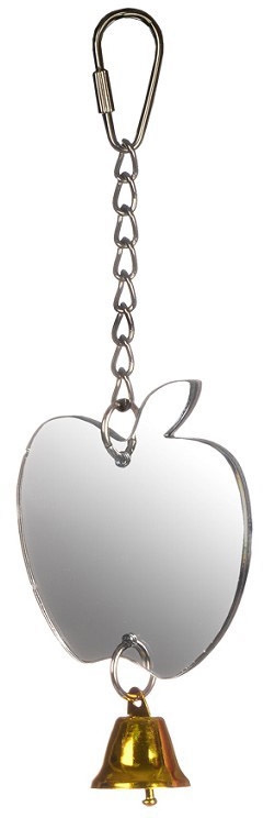 Zrcátko jablko se zvonkem pro malé a střední exoty. Rozměr : 20 x 7,5 cm / tloušťka zrcátka 2,5 mm /