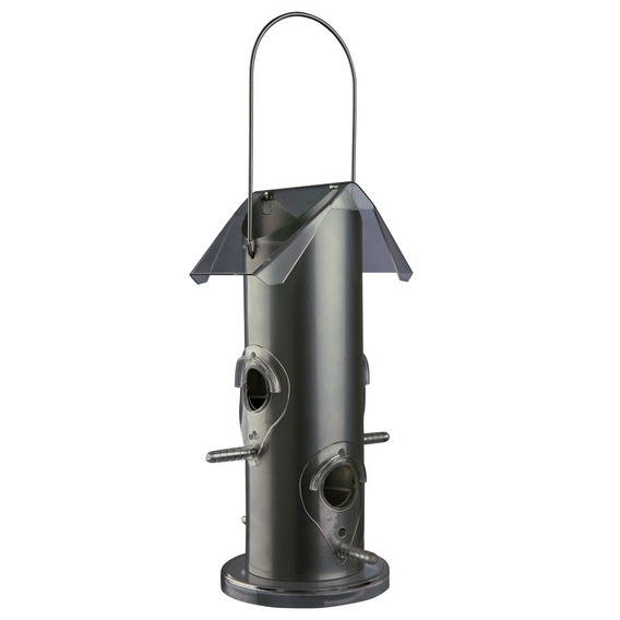 Kovové závěsné zahradní krmítko pro ptáčky se 4 otvory. Vhodné pro plnění slunečnicí. Rozměry 25 x 14 x 14 cm. Barva stříbrná. - zahradní krmítko pro ptáčky poskytuje v dlouhých zimních měsících místo, kde se můžou bezpečně a v klidu nakrmit - krmítko je vyrobeno z kovu s plastovou střechou - krmnou směs krmítko udržuje v suchu, čistotě a bezpečí proti povětrnostním vlivům - krmítko má odnímatelnou střechu a tak se snadno zimní směs nasype do krmítka - krmítko má 4 přistávací bidýlka u otvorů, kde se ptáček nakrmí připravenou zimní směsí