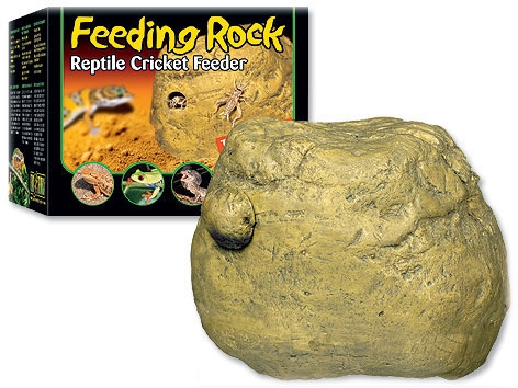 Dvoudílná skála z imitace kamene na živé krmivo. Velikost: 12 x 9 cm, výška 10 cm. Jednoduché použití ExoTerra krmné skály, usnadňuje krmení plazů hmyzem. Na dno skály nasypete jemný pudr (např. Vitamize, Calcimize,Calcidize), sloužící jako doplněk stravy. Potom přidáte maximálně 10 - 20 cvrčků, nebo jiného hmyzu (záleží na jejich velikosti) a přiklopíte skálu víkem. Obsah protřepete a zátkou ucpete otvor. Nakonec umístíte skálu do terária a odstraňte zátku. Hmyz ke krmení vylézá malým otvorem a tím je naplněn přírodní způsob krmení vašich zvířat.
