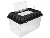 Ideální pro přepravu terarijních zvířat nebo krmného hmyzu. Velikost: 32,5 x 22 x 21 cm. - Stohovatelné - stálý přístup ke krmným dvířkám z boční strany - Větrací otvory z boční i horní strany - Velká dvířka pro snadný přístup z horní strany - Průhledný čirý plast pro snadné pozorování - Pevná konstrukce zabraňuje úniku zvířat