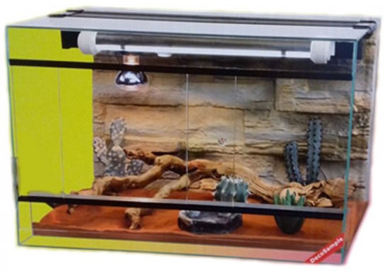 Skleněné terárium s výbavou. Rozměr 60 x 40 x 40 cm. Set obsahuje: 15w zářivka (UV-a + UV-B), 40w žárovka, teploměr, vlhkoměr a teraríjní zámek. UPOZORNĚNÍ: Pouze osobní odběr v Brně, rozvoz po Brně nebo zaslání paletou (cena dle váhy a vzdálenosti). Nelze zaslat běžnou zásilkou.