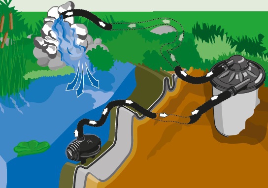 Sada jezírkové tlakové filtrace Heissner do 4000 l objemu jezírka (do 2000 litrů při osazení rybami). · mechanicko-biologické čištení · včetně rychločistícího systému · možnost skrytého umístění a zároveň napájení potůčku (může být zakopán v zemi Provozní napětí: 230 V Dopravní výška: cca 2,20 m Výkon čerpadla: 2 200 l/h UV lampa: 7 W Čerpadlo: 35 W Hadice: 3 m Rozměry d × š × v: 27 × 27 × 38 cm