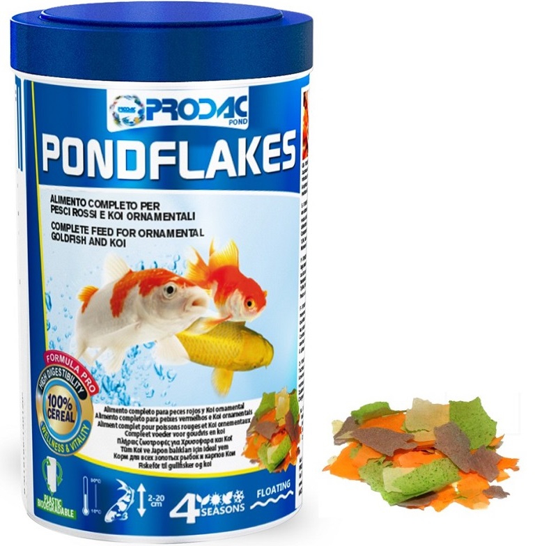 Plnohodnotné krmivo ve formě vloček pro studenovodní okrasné ryby, vhodné zvláště pro ryby kaprovité a karasovité.Krmivo s obsahem kvalitních proteinů, tuků a minerálních solí pro zdraví Vašich ryb neobsahuje barviva.Velké vločky dlouho plavou na hladině a umožní nakrmení všech ryb v jezírku - těch co žijí u hladiny i u dna.Složení: rybí moučka a moučka z krevet, rýžová, pšeničná a sojová mouka, řasy, vitamíny A, D3, E.Dostupné v balení: 1 kg (10 l), 160 g (1 l)