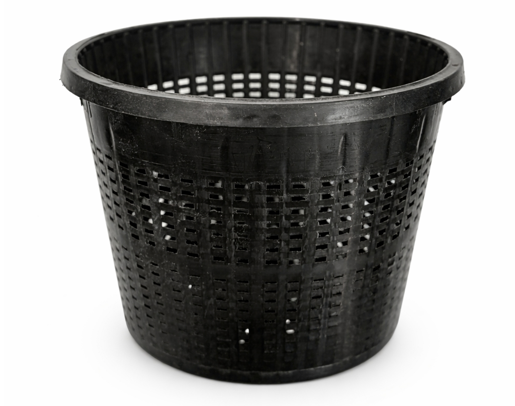Plastový košík vhodný pro sázení leknínů a dalších vodních a bahenních rostlin ve středně hluboké a hluboké vodě zahradního jezírka. Průměr 13 cm, výška 10 cm.
